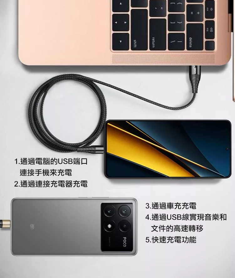 E-books XA68 USB-A to C 60W充電傳輸線 奶茶
