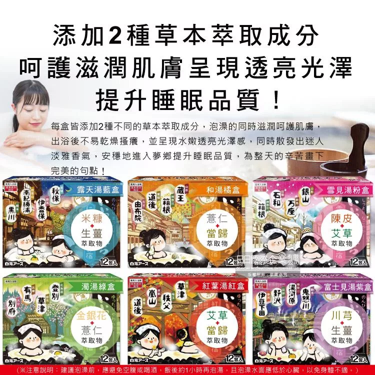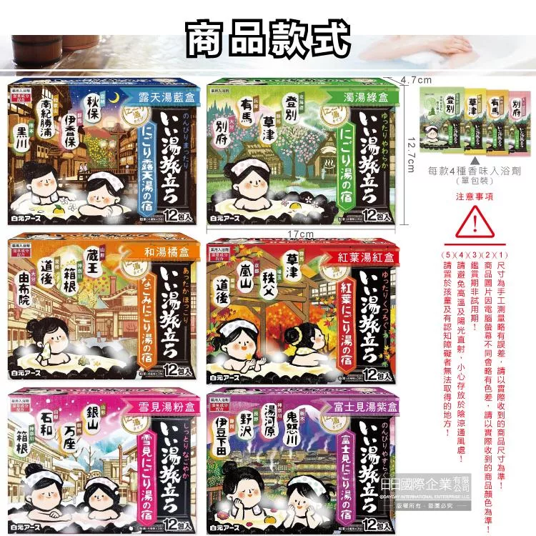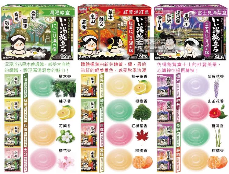 日本白元名湯之旅溫泉入浴劑25gx12包/紅盒 (4種香味湯色/柚子茶.櫸木.紅楓.愛媛柑橘)