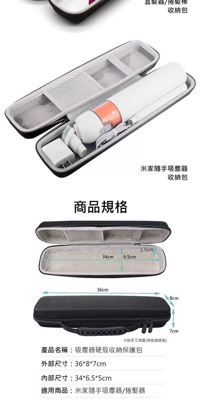 用途:收納米家隨手吸塵器/捲髮器/直髮器..收納硬殼包