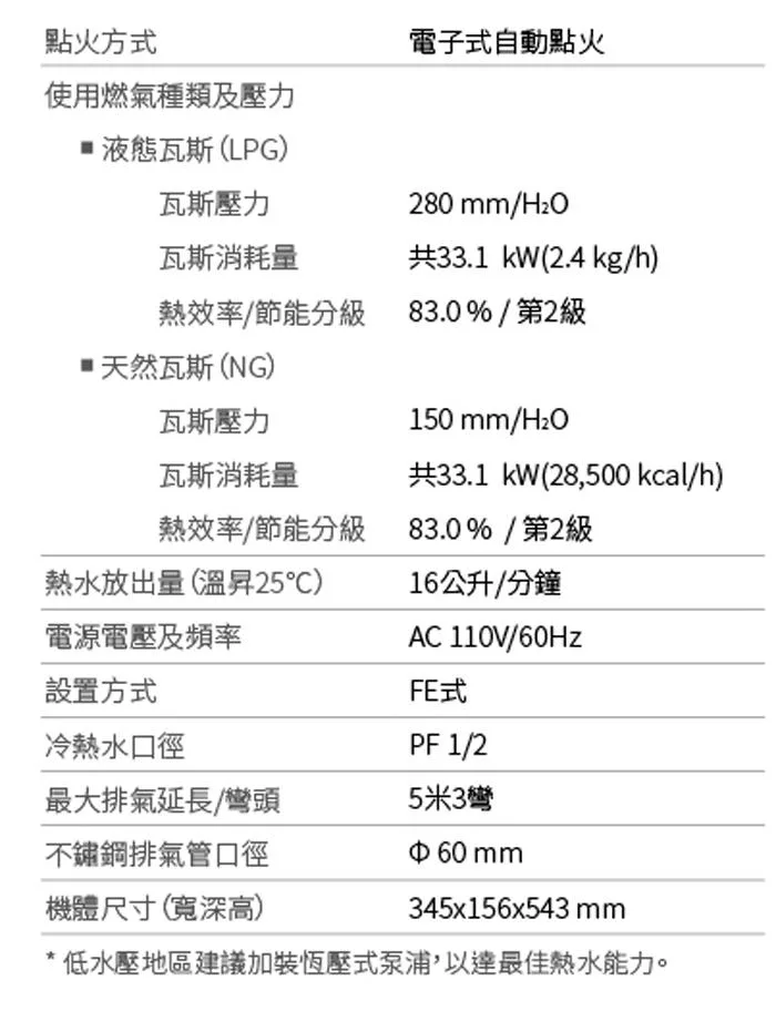 莊頭北 12公升 瓦斯數位強排型強制排氣 TH-7127FE 送基本安裝 (LPG液化瓦斯)