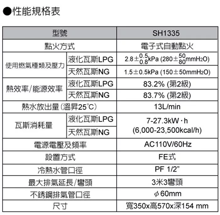 莊頭北 12公升 瓦斯數位強排型強制排氣 TH-7127FE 送基本安裝 (LPG液化瓦斯)