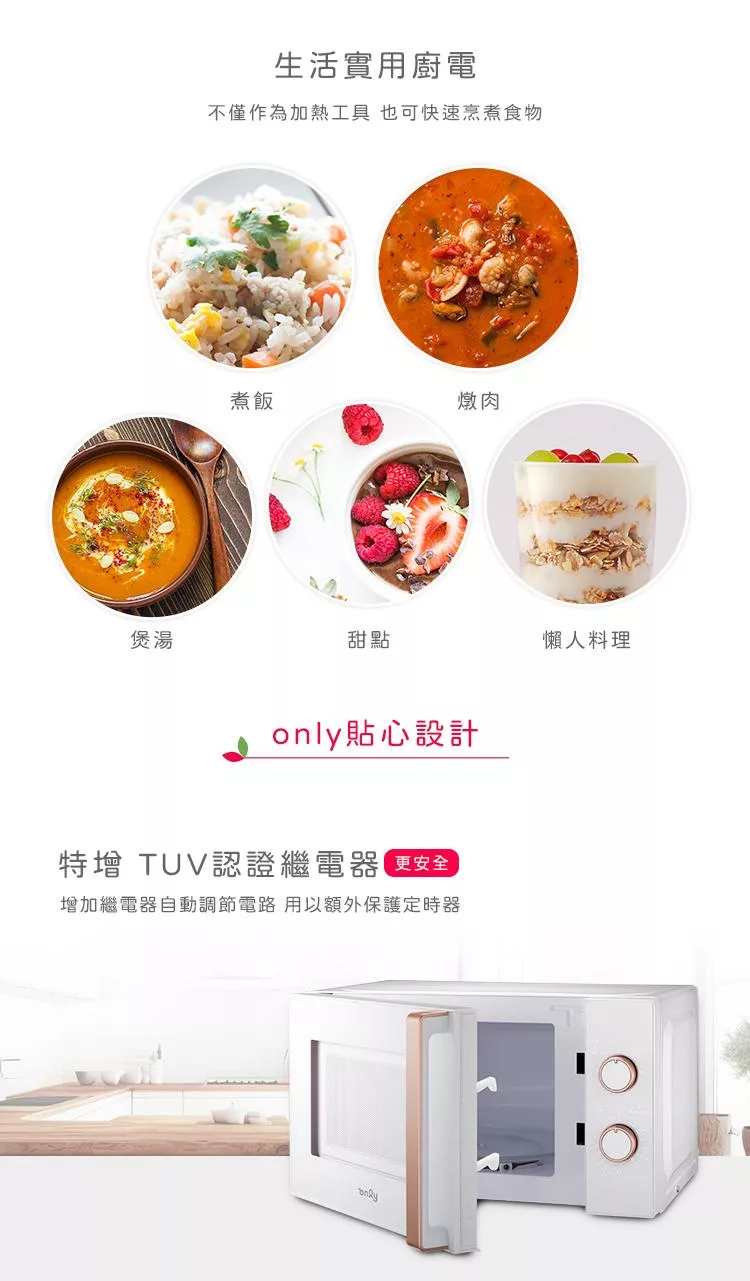 【1/29-3/4 only馬拉送】【only】微波專家20L美型平台式微波爐OM20-G67E復古粉(微電腦/比機械式更簡單/加熱空間媲美25公升轉盤式)