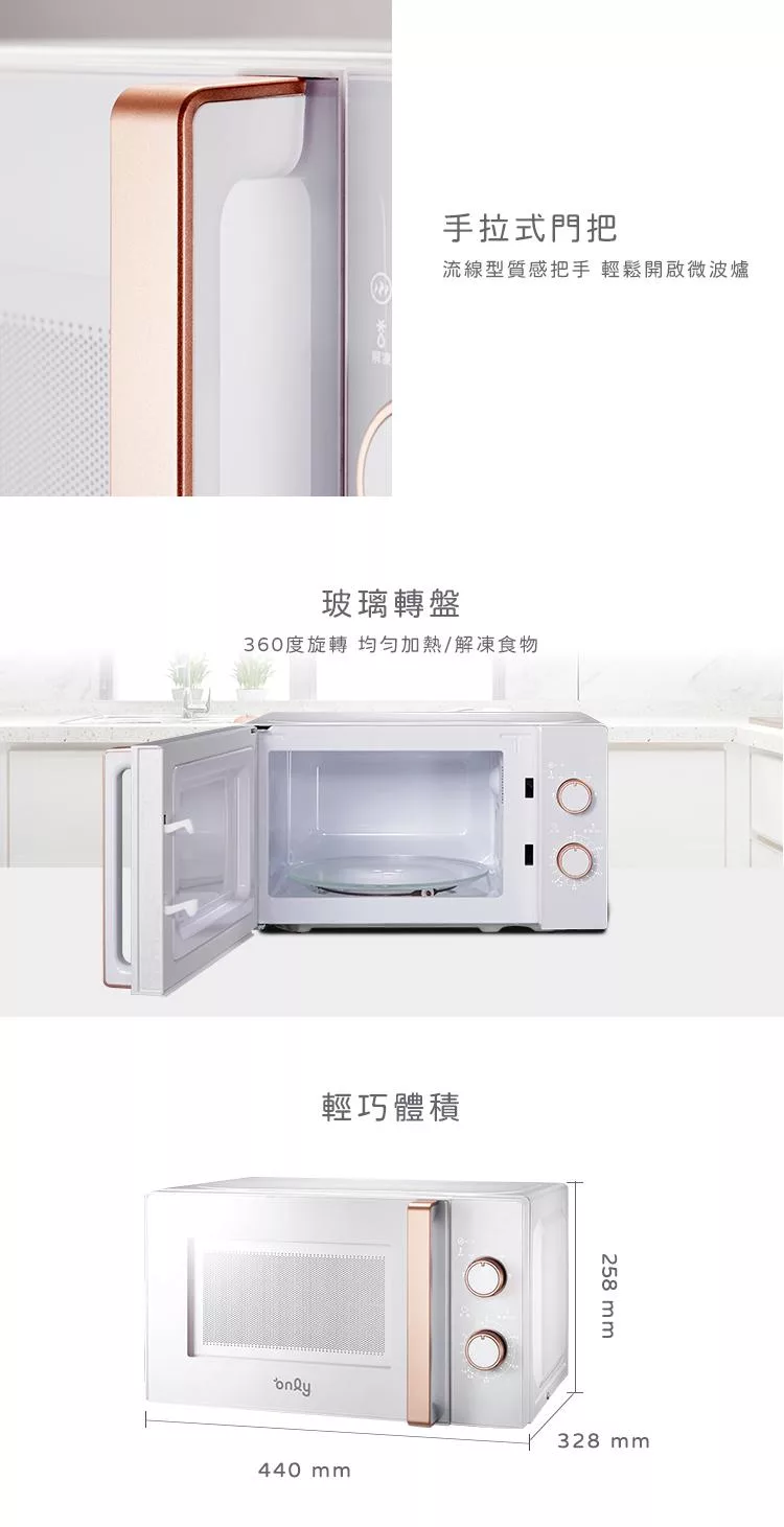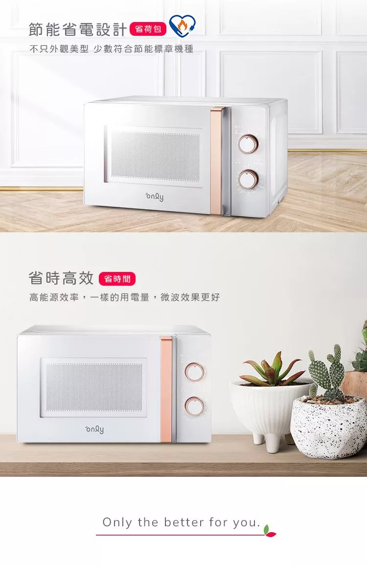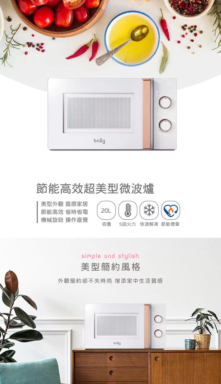 【1/29-3/4 only馬拉送】【only】節能高效20L美型微波爐OM20-M24質感黑 福利品(節能標章20公升機械式)