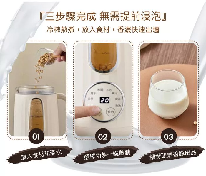 無需泡豆,即打即飲,冷熱兩用