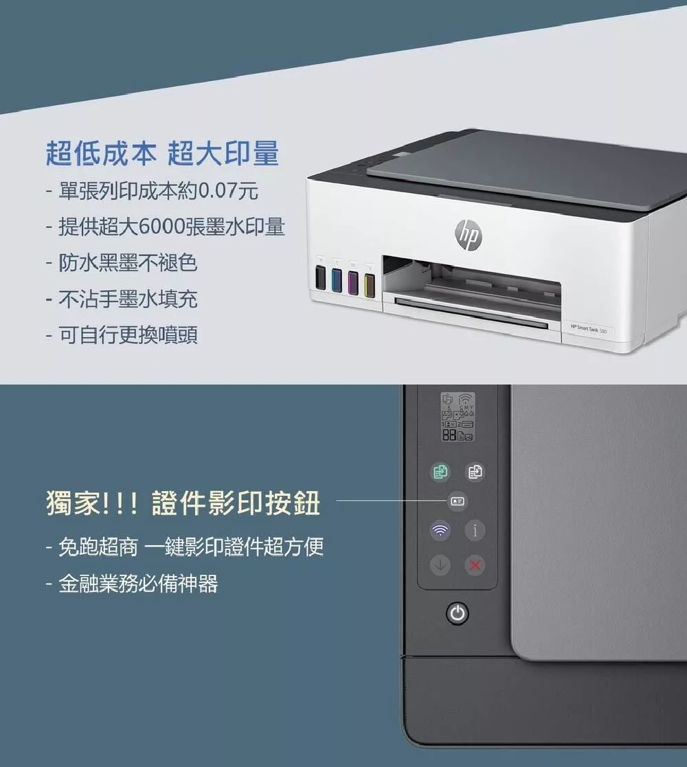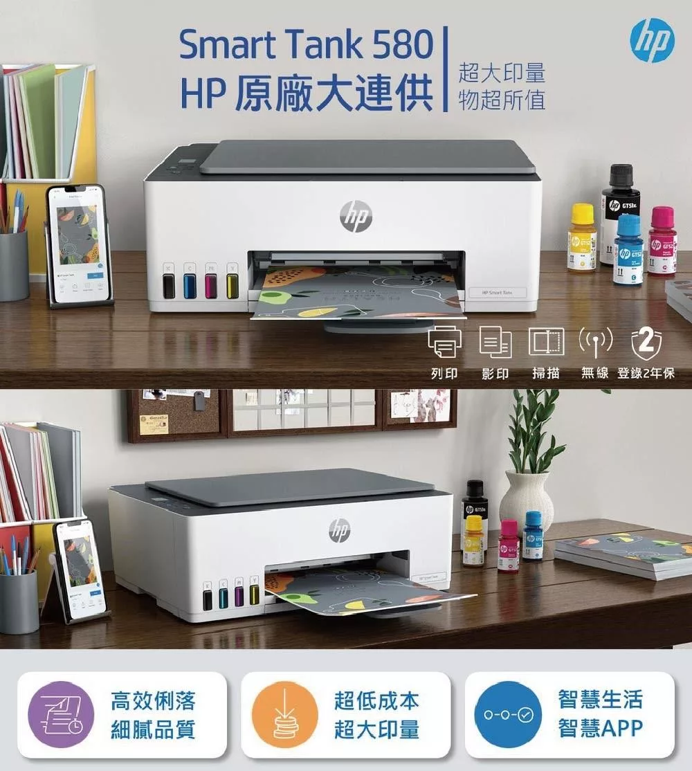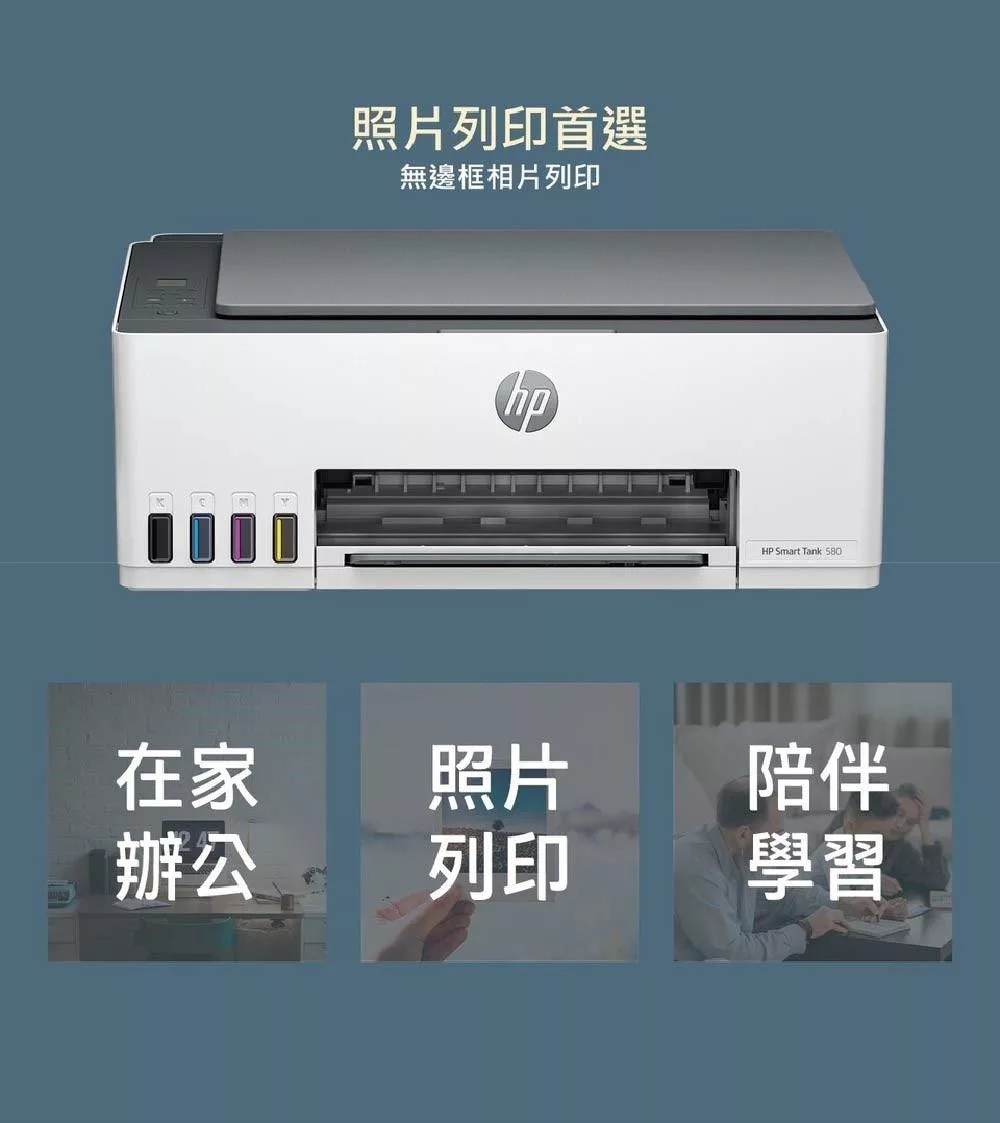 HP Smart Tank 580 All-in-One無線連續供墨印表機(內含原廠四色墨水)