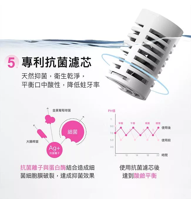 ◆抗菌濾芯,平衡酸性降低蛀牙率
