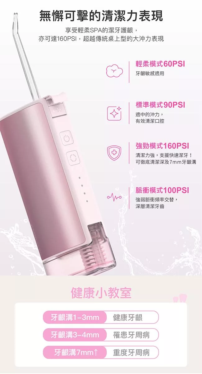 【BLAUPUNKT 德國藍寶】紫外線消毒智能潔淨沖牙機(BPH-CY01-TW) 落櫻粉