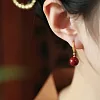 【HandStyle】耳環 復古風氣質金沙紅瑪瑙圓珠耳鉤耳環(15040)