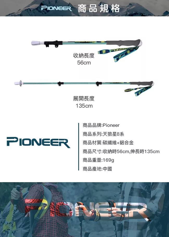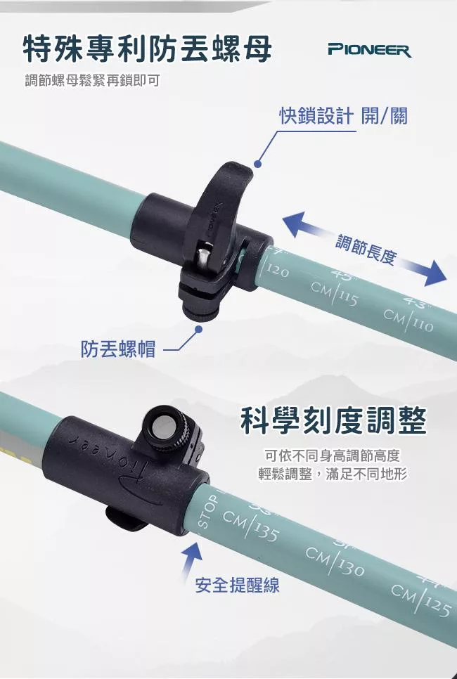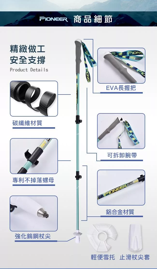 【Horizon 天際線】逐鹿巔峰碳纖強化登山杖|加厚碳纖強化材質 夜光藍