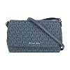 Michael Kors 銀字滿版Logo 塗層帆布皮夾式鍊包/WOC (海軍藍)