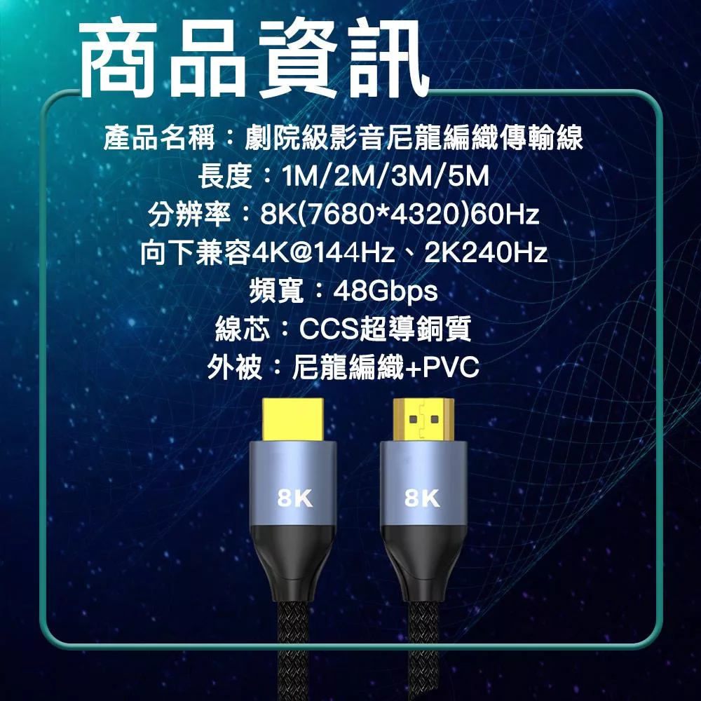 【宇聯】協會認證HDMI2.1 真8K HDR 劇院級影音尼龍編織傳輸線 3M