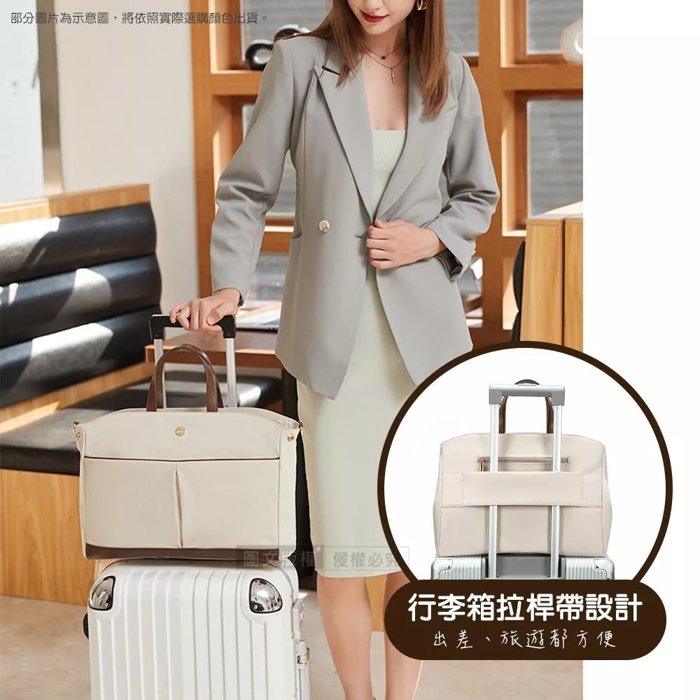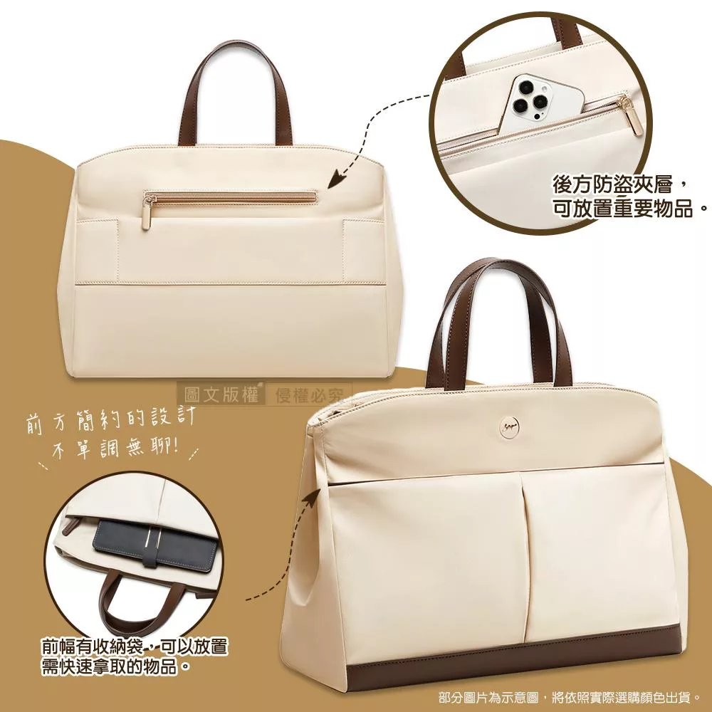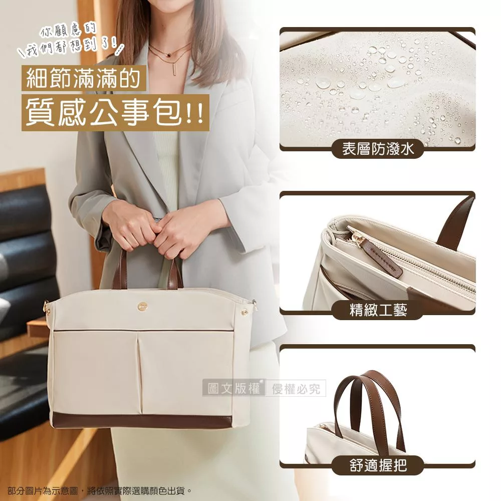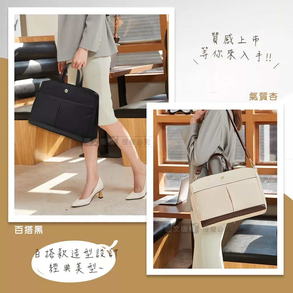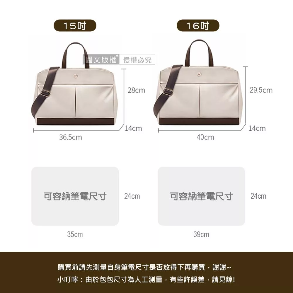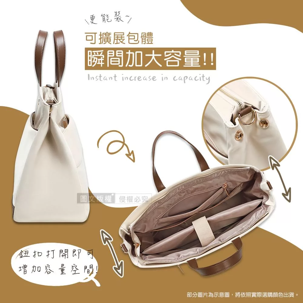 日系清爽Style 14吋 開口可擴容托特包 大容量學生/通勤族電腦包 附背帶 米淺杏