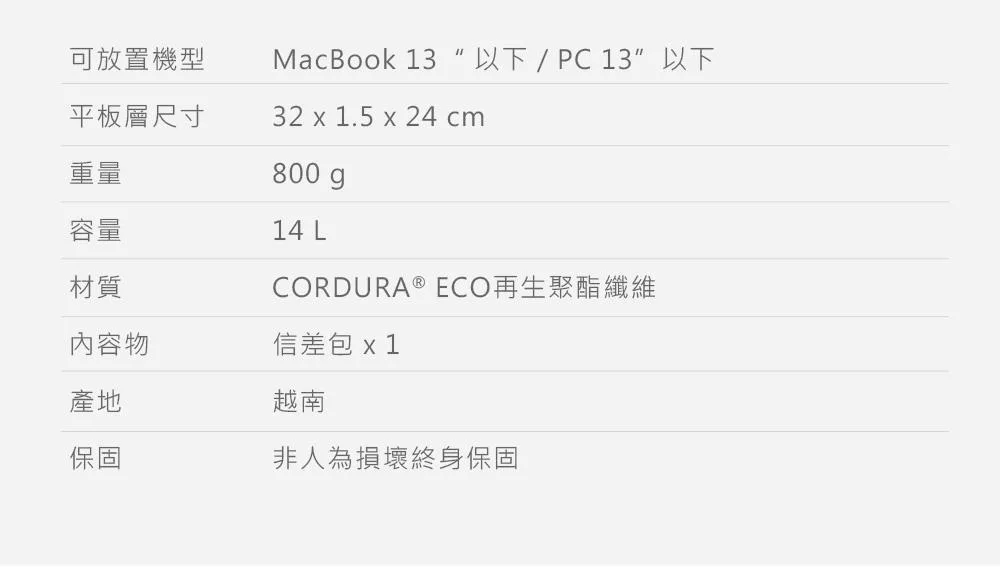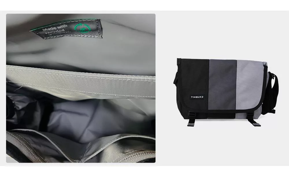 Timbuk2 Classic Messenger Cordura® Eco 系列郵差包,採用 CORDURA® ECO 再生聚酯纖維,相較於使用一般的回收聚酯紗線,在織物的抗撕裂強度與耐磨性表現均較佳,但重量卻更為輕巧,不增加使用時肩上的負擔。