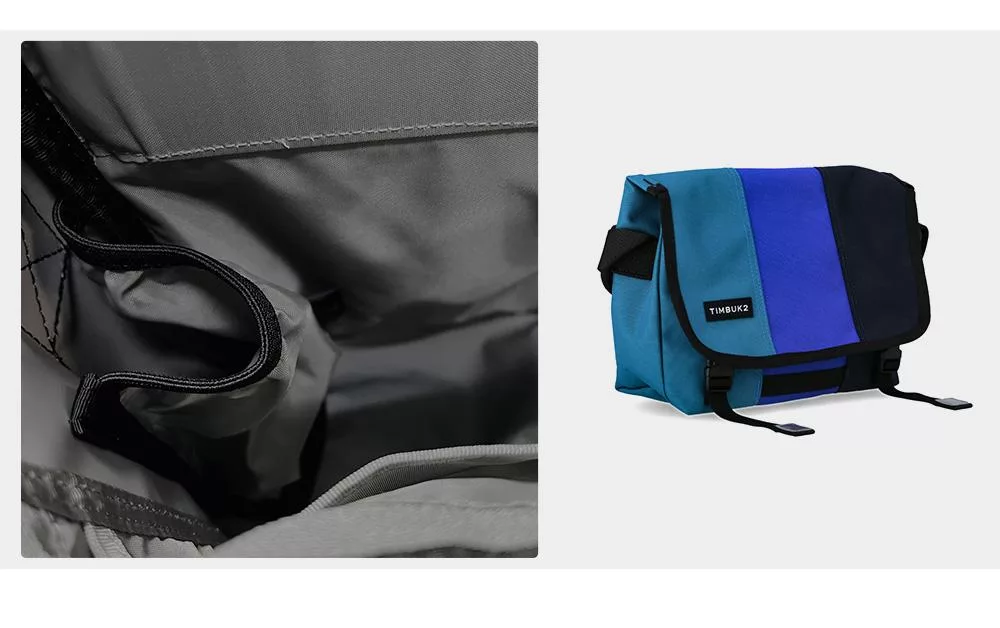遇到雨天的時候最擔心隨身物品受潮,而 Timbuk2 Classic Messenger Cordura® Eco 13 吋經典郵差包在內部構造皆採用防水尼龍材質,為加強防水效果,嚴選光滑碳塗層面料,有著強韌、抗撕裂、耐磨、輕盈、防水、不易褪色等特性,提升使用上的耐用性。