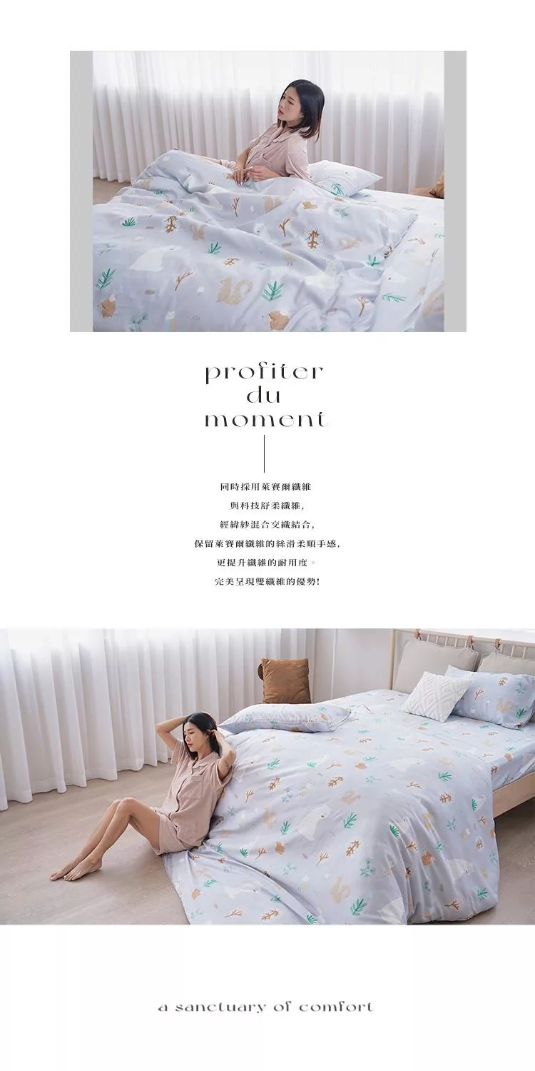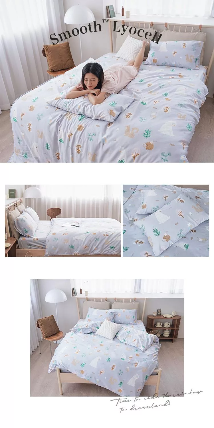 義大利Fancy Belle《初見森林》雙人純棉四件式防蹣抗菌吸濕排汗兩用被床包組