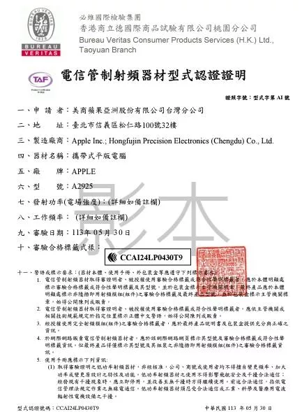 • 【審驗合格標籤或符合性聲明標籤之號碼】CCAI24LP0430T9