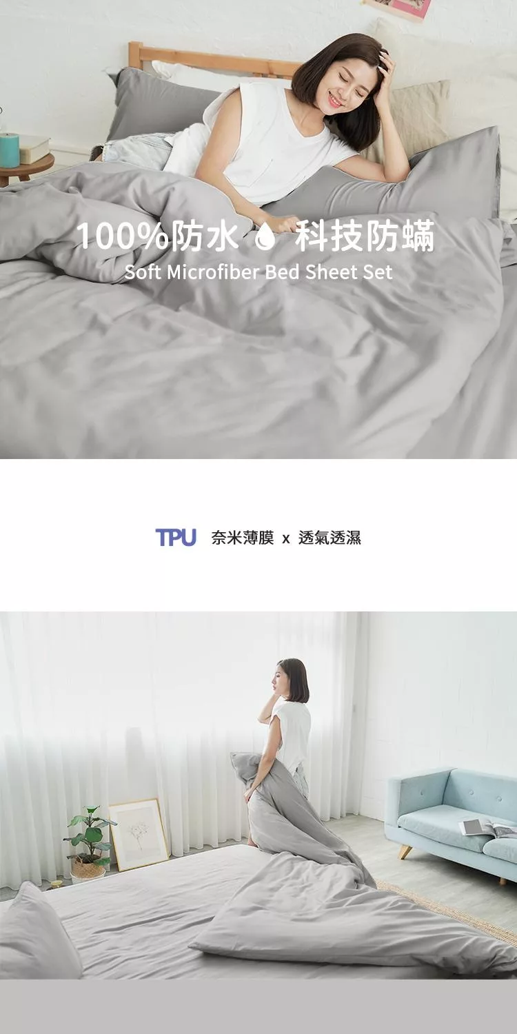 《BUHO》極柔暖法蘭絨兩用毯被床包雙人四件組 《微光路引-迷灰》