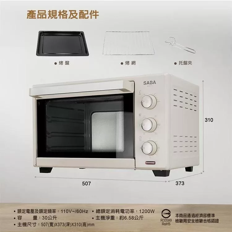 【德國 SABA】30公升旋風烤箱(SA-HT11)