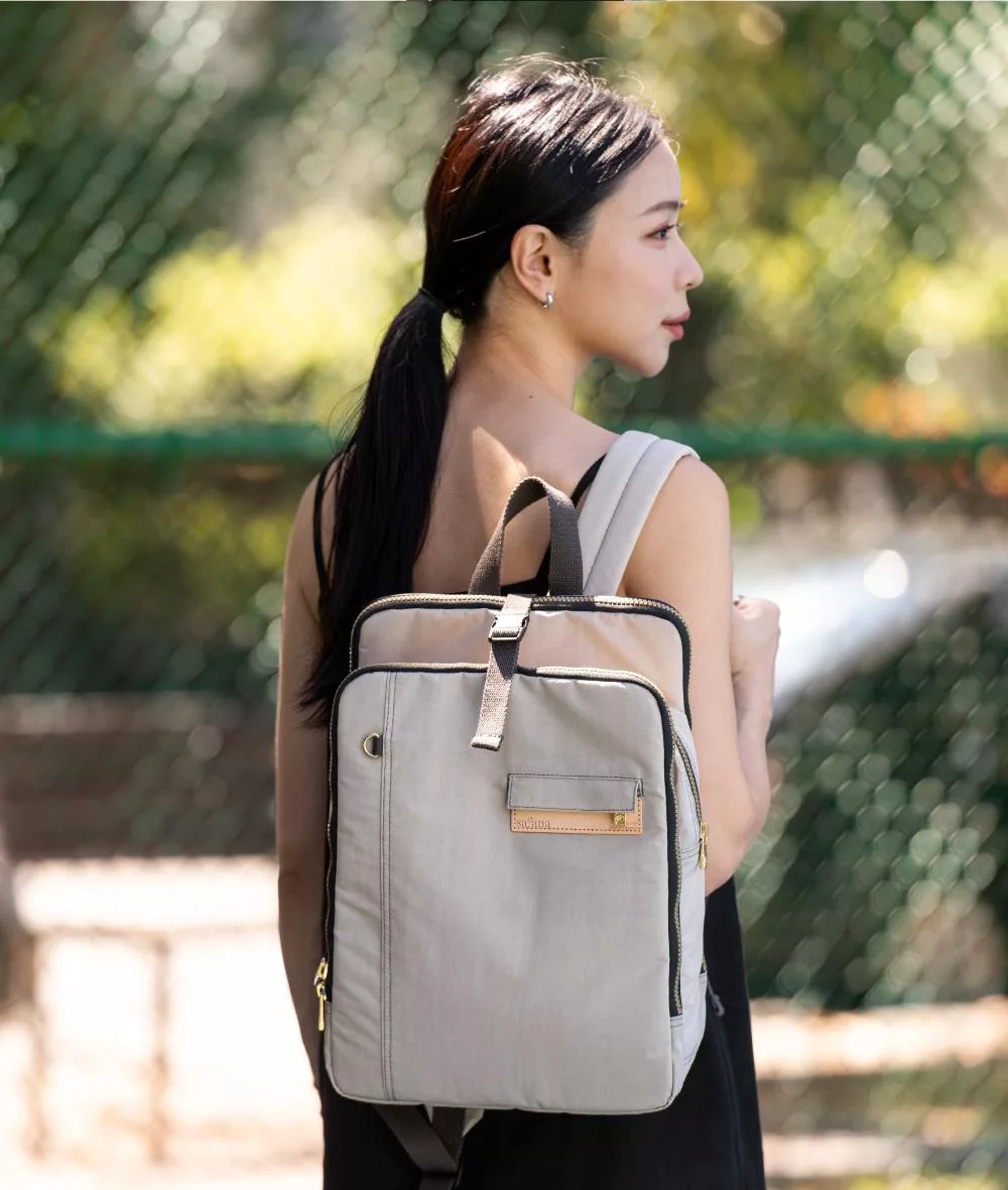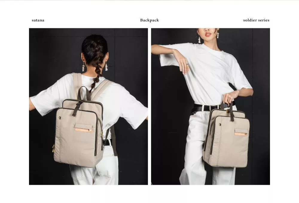 satana - Soldier 趣淘三明治後背包 - 奶茶色