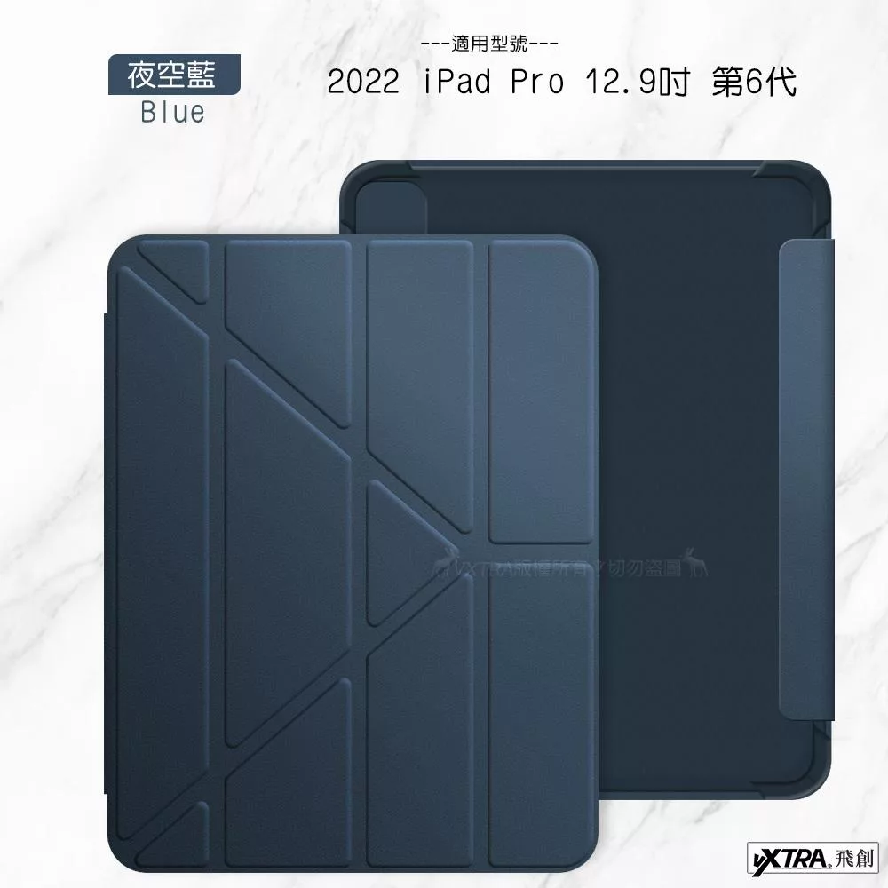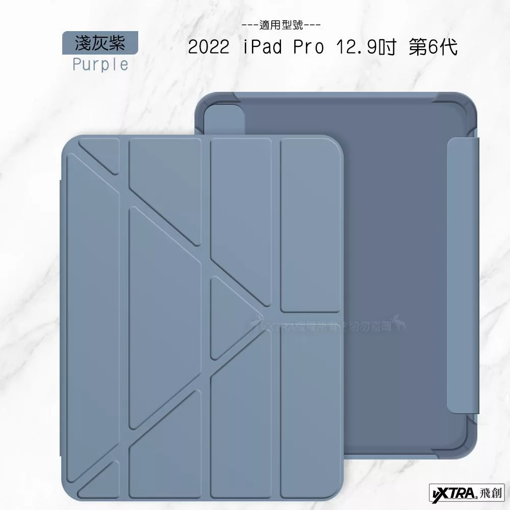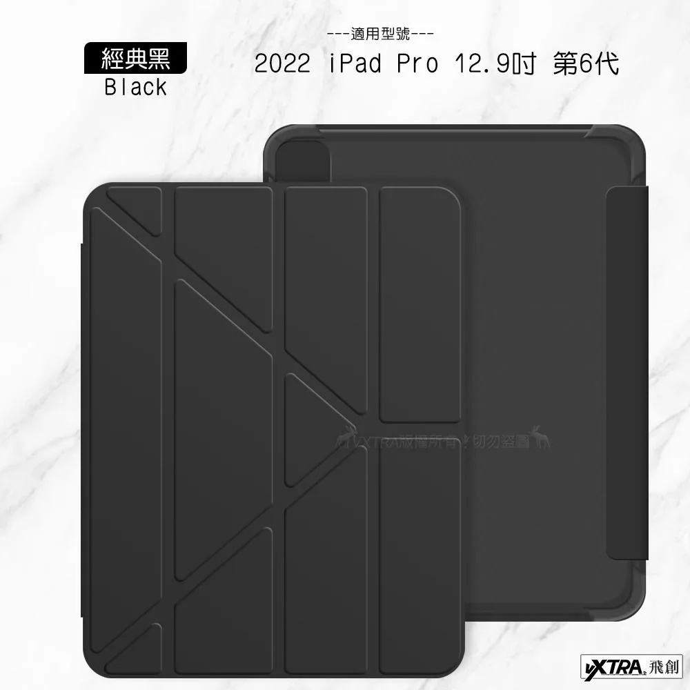 二代筆槽版 VXTRA 2022 iPad Pro 12.9吋 第6代 北歐鹿紋平板皮套 保護套 (清水灰)