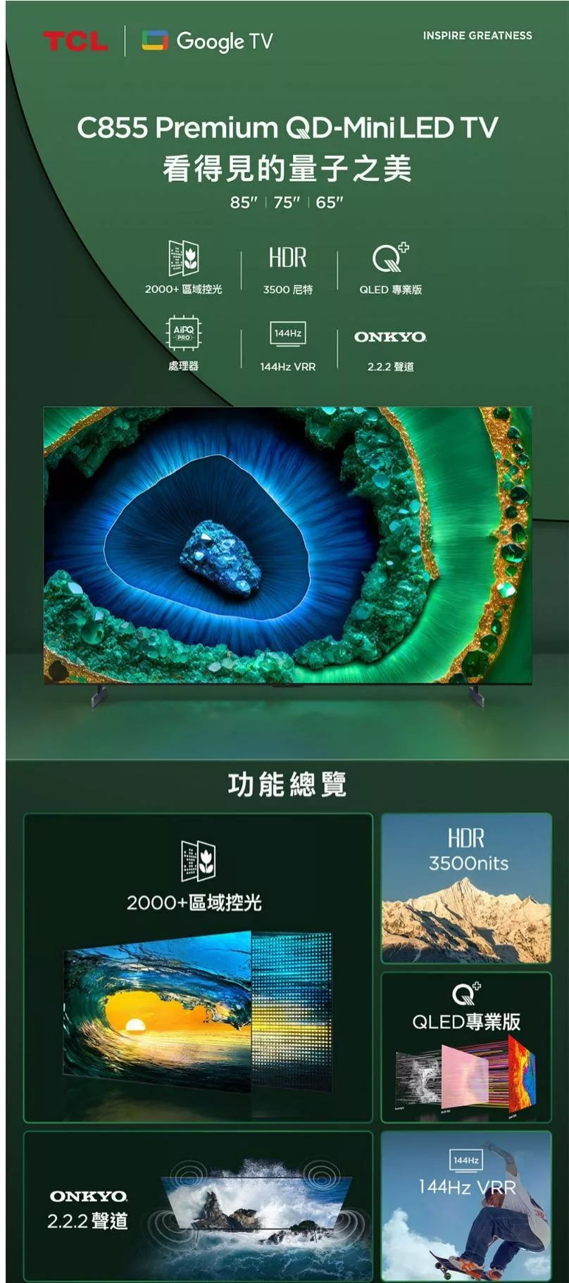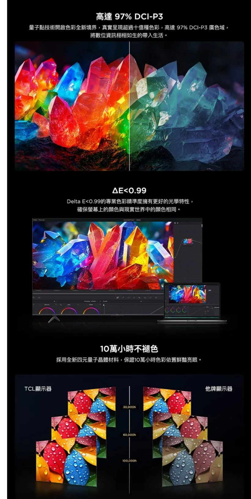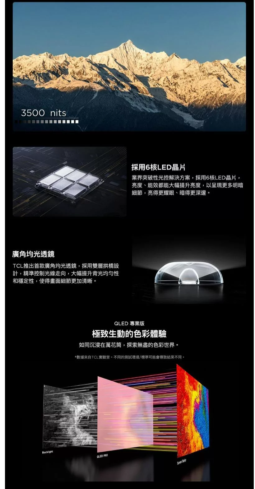 含基本桌面安裝 TCL 85吋 85X11K 頂級 QD-Mini LED Google TV 量子連網液晶顯示器