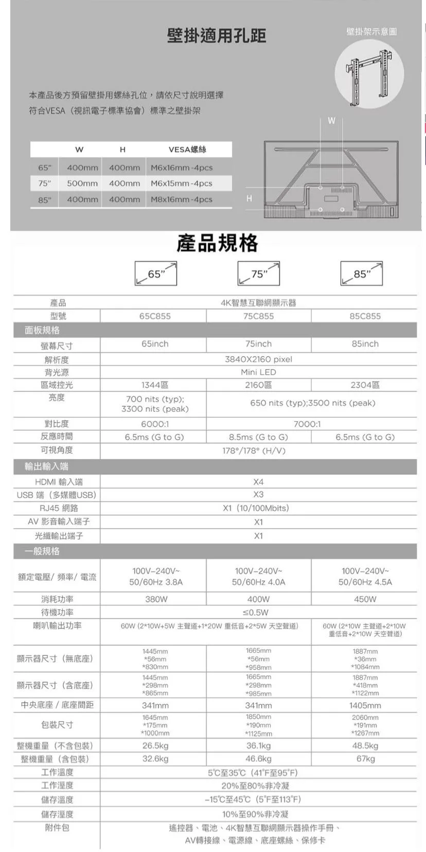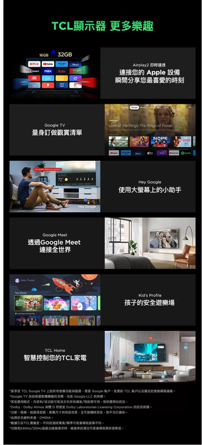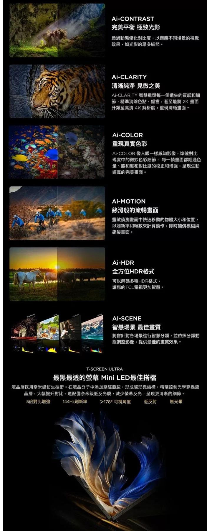 含基本桌面安裝 TCL 85吋 85X11K 頂級 QD-Mini LED Google TV 量子連網液晶顯示器