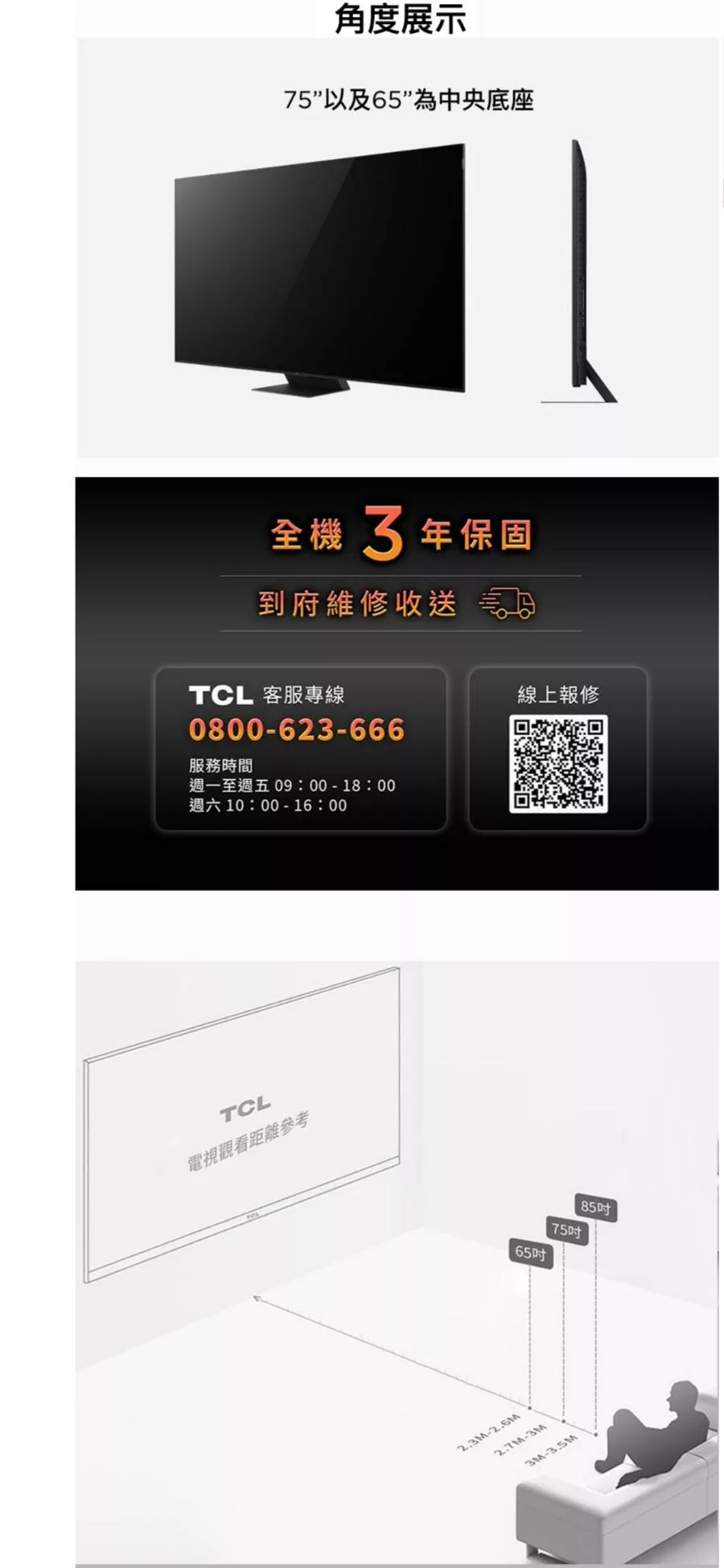【活動優惠】TCL 85吋 85P7K QLED 量子智能連網液晶顯示器 P7K Google TV 含基本安裝+舊機回收