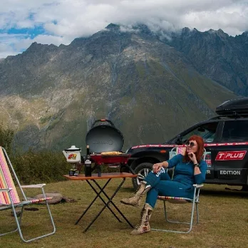 便攜折疊炭烤爐 雙層烤網 台灣露營燒烤必備 美式悶燒燒烤爐 手提輕量 戶外烤肉神器 曜石黑-59*39*36cm