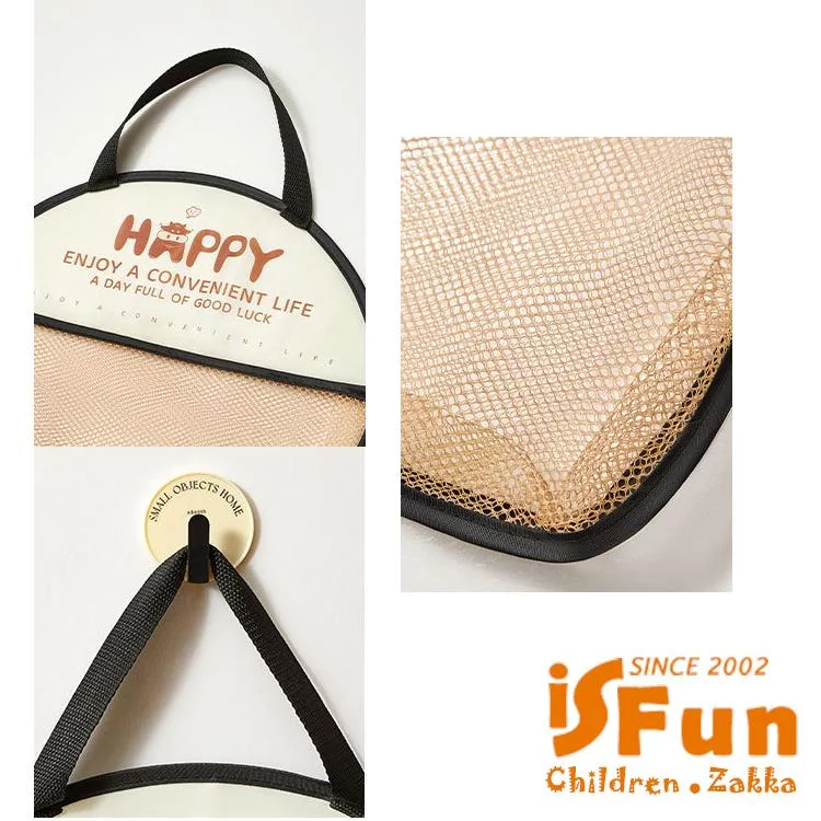 【iSFun】開心萌牛*浴室房間客廳玩具網格收納掛袋/雙層黑白