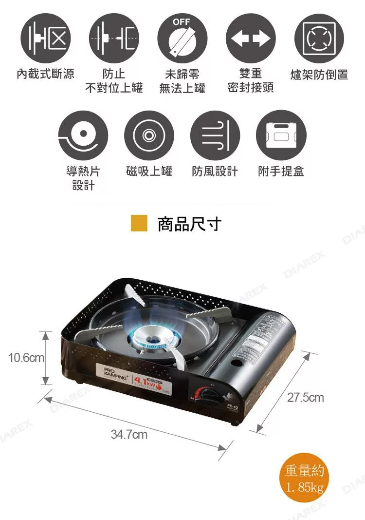 Pro Kamping 領航家4.1kW 黑武士卡式爐 PK-4100III 附收納硬盒