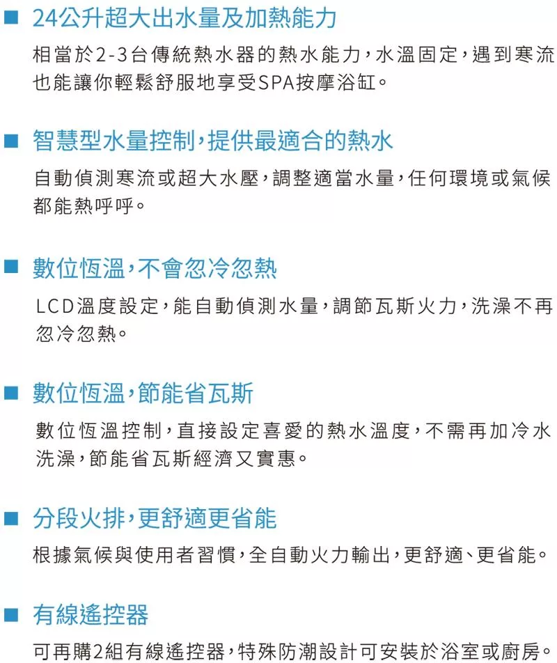 ▪ 24L加熱能力,浴缸適用
