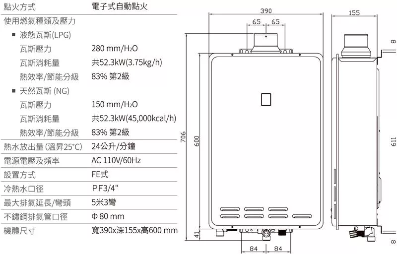 莊頭北 24公升 瓦斯數位恆溫型強制排氣TH-7245FE 送基本安裝 (LPG液化瓦斯)