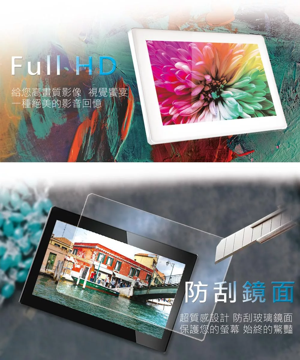逸奇e-Kit 13.3吋耐磨抗刮玻璃鏡面數位相框電子相冊-白色款 DF-VM13_W