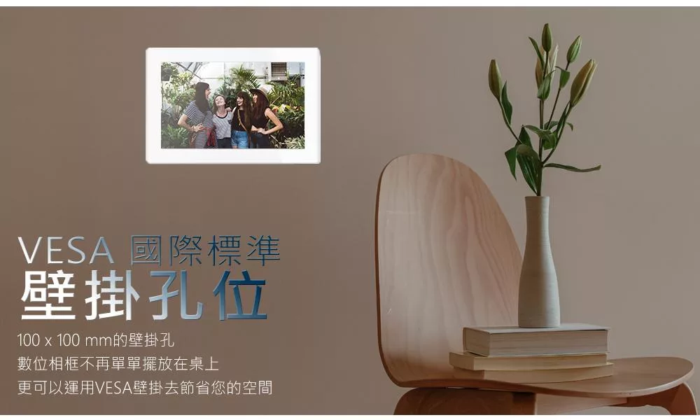 逸奇e-Kit 19吋耐磨抗刮玻璃鏡面數位相框電子相冊-白色款 DF-VM19_W