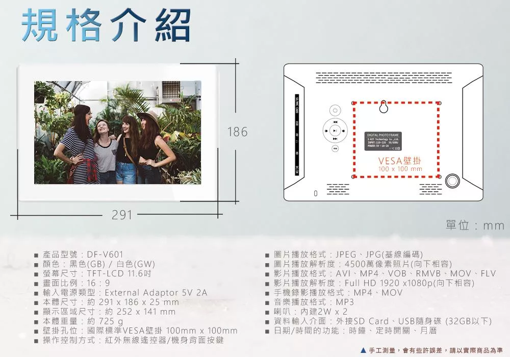 逸奇e-Kit 18.5吋前後置喇叭數位相框-黑色款 DF-FR19_BK
