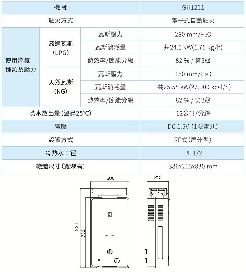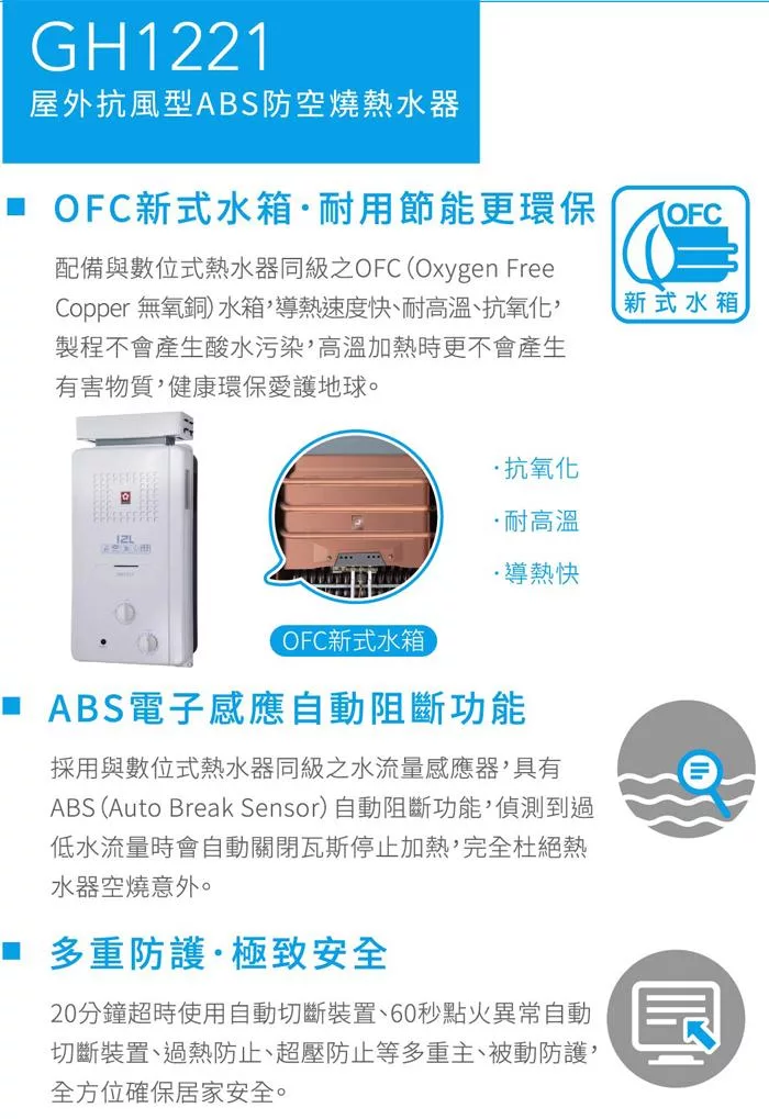 莊頭北 12公升 瓦斯安全熱水器屋外一般型 TH-3126RF 送基本安裝 (LPG液化瓦斯)