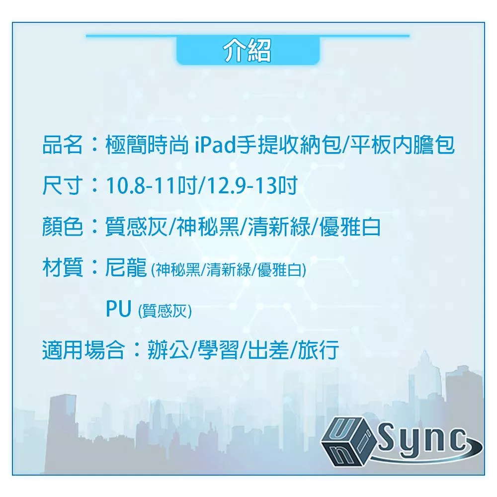 UniSync 極簡時尚 iPad10.8-11吋手提收納包/平板內膽包 清新綠