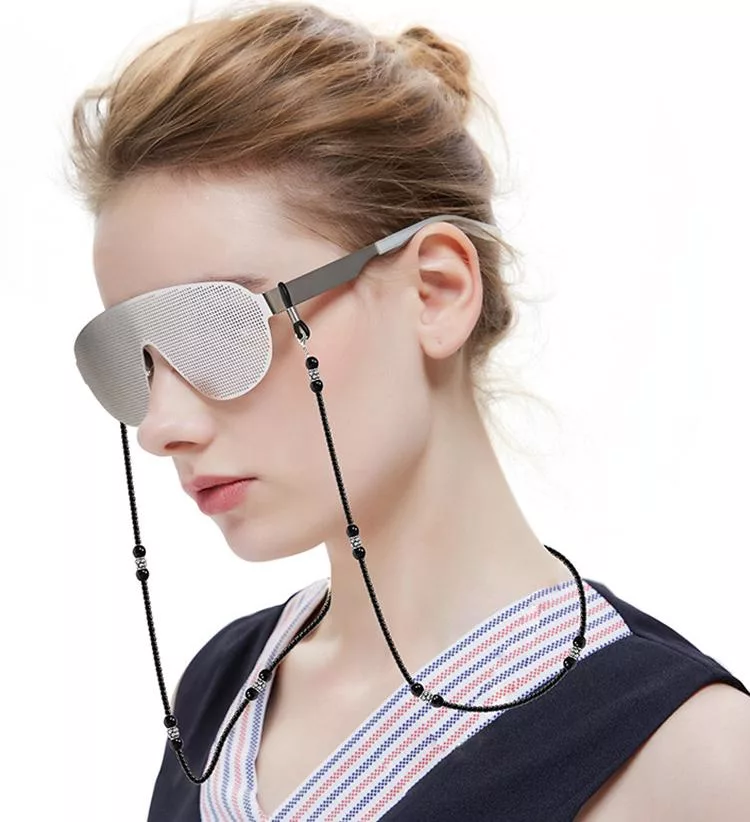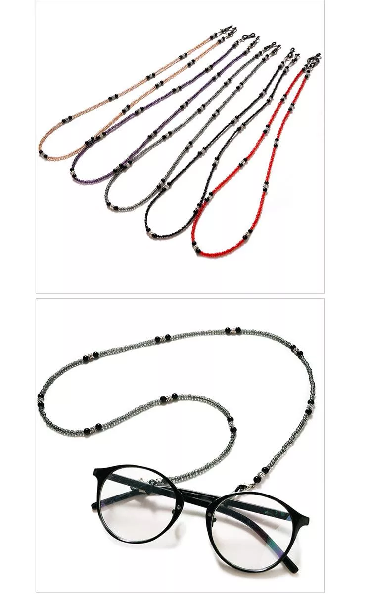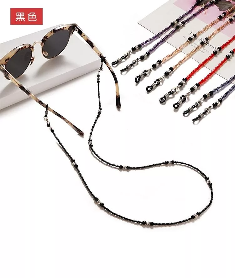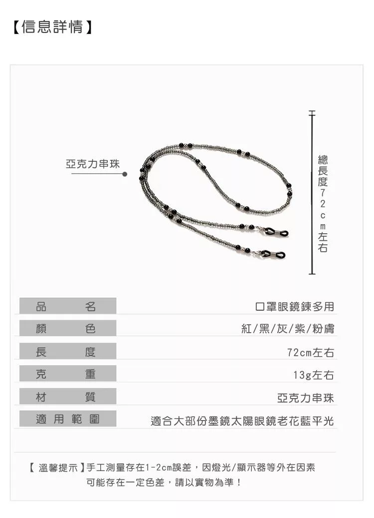 seoul show首爾秀 隔花串珠兩用口罩掛繩鏈墨鏡平光眼鏡鍊老花近視防丟鍊  黑色