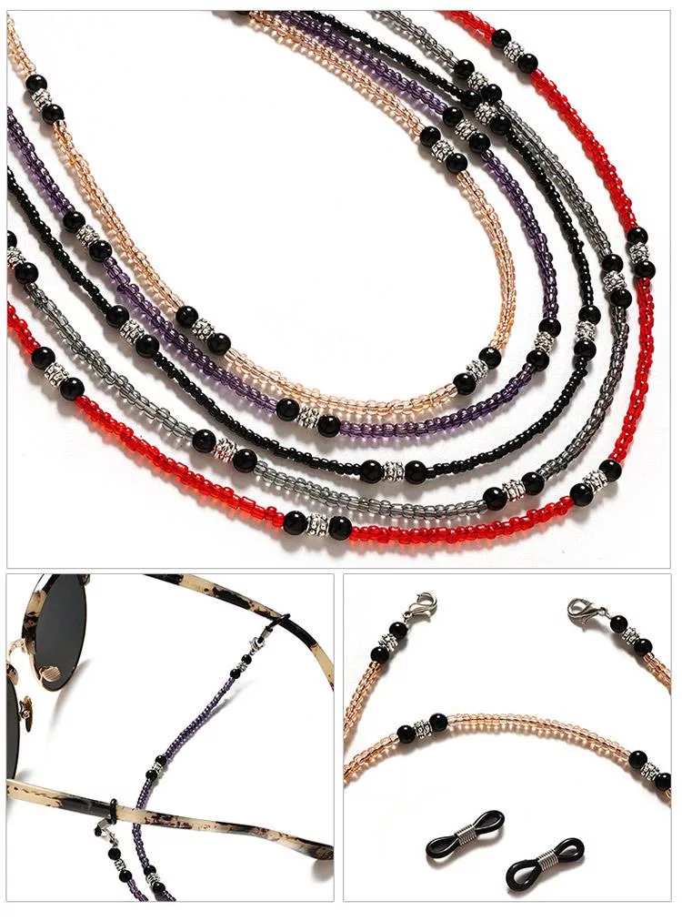 seoul show首爾秀 隔花串珠兩用口罩掛繩鏈墨鏡平光眼鏡鍊老花近視防丟鍊 黑色