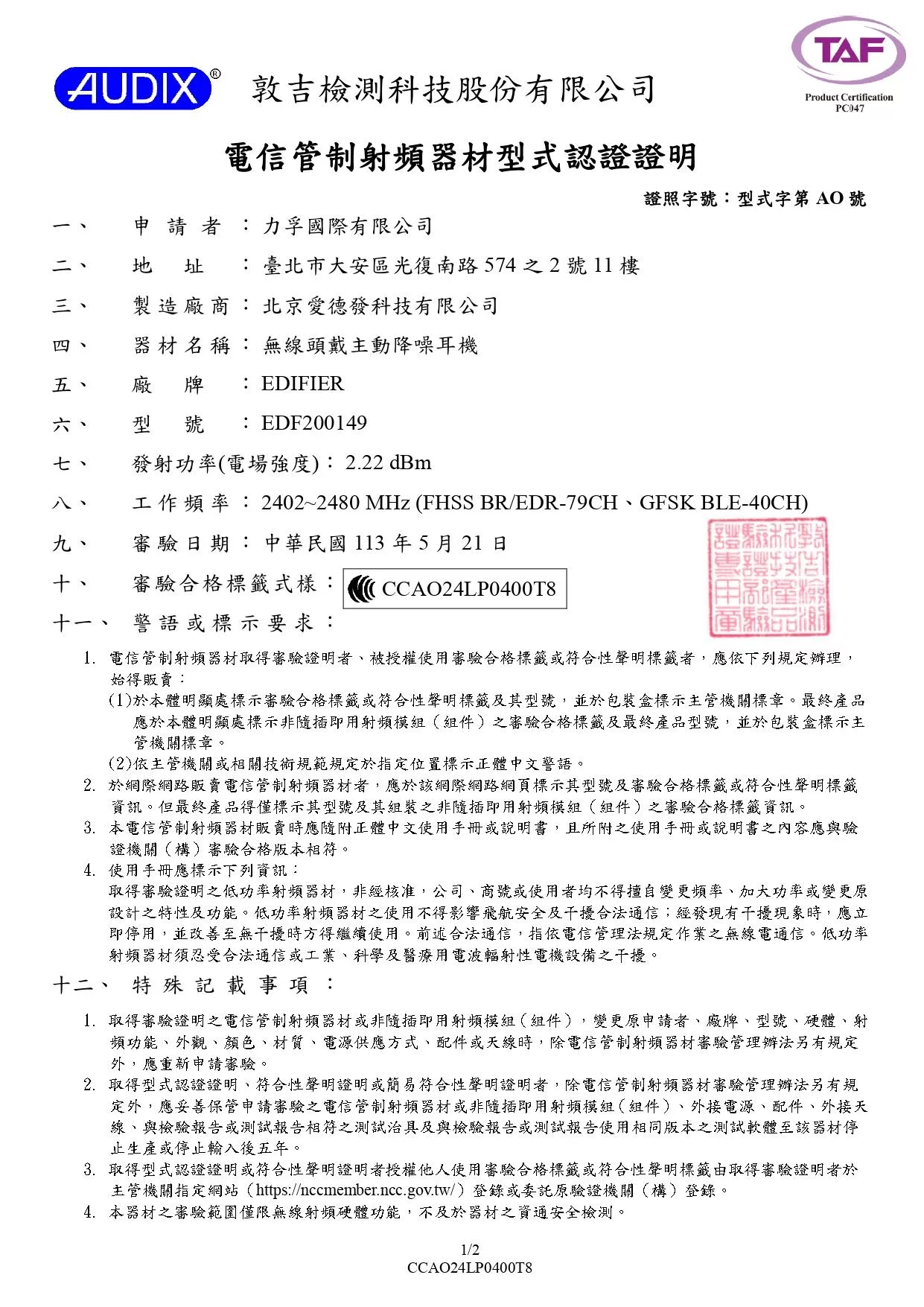 型式認證查詢連結:https://nccmember.ncc.gov.tw/Application/Fun/Fun016.aspx