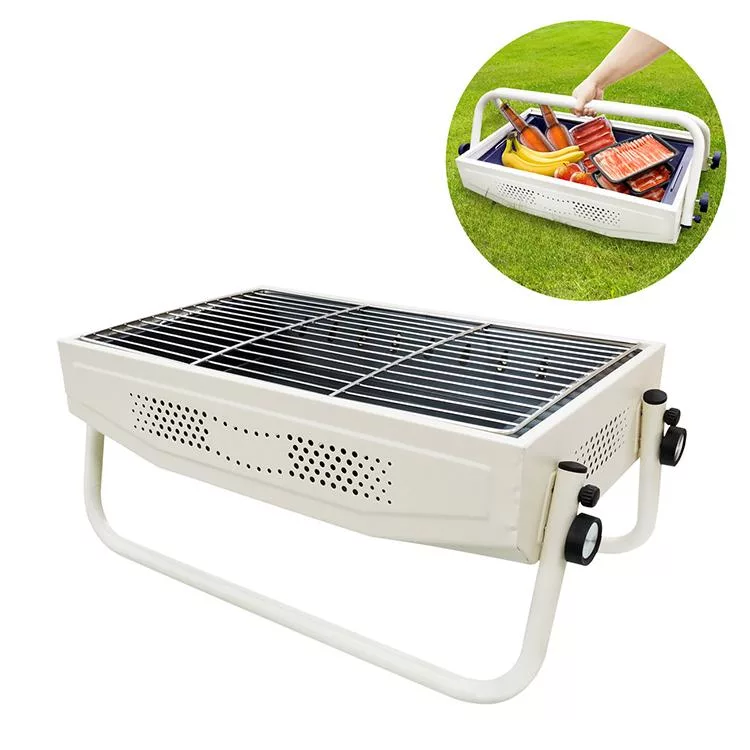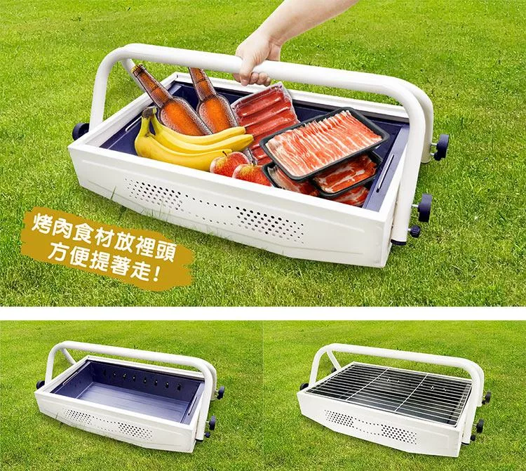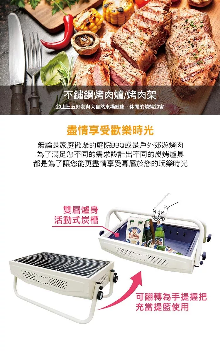 便攜折疊炭烤爐 雙層烤網 台灣露營燒烤必備 美式悶燒燒烤爐 手提輕量 戶外烤肉神器 曜石黑-59*39*36cm