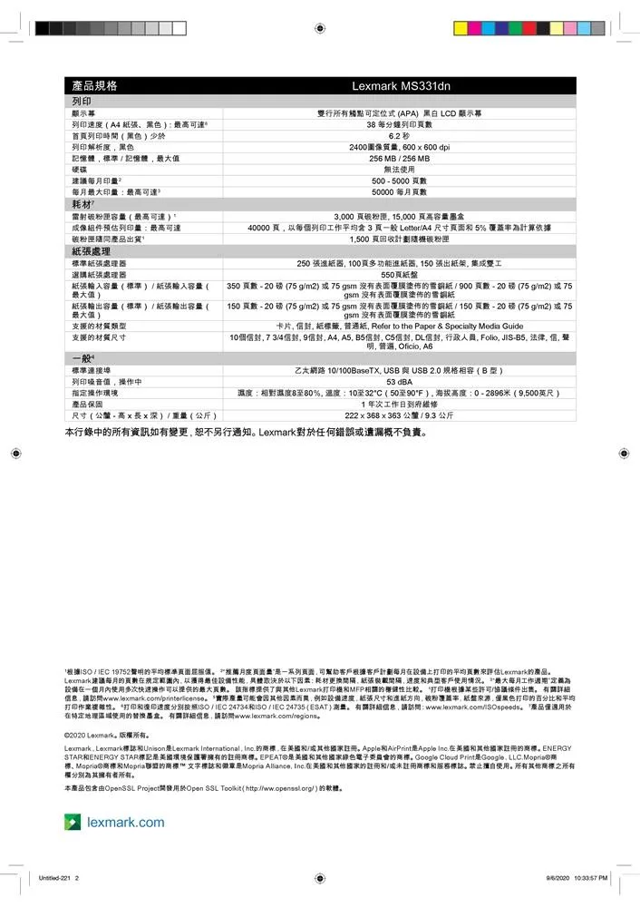 輸出量大,融入各處俱佳商務等級的 MS431dn 只有 8.7 吋高 x 14.5 吋寬 x 14.3 吋深,融入各處均綽綽有餘, 輕盈小巧,設置與移動同樣簡便輕鬆。