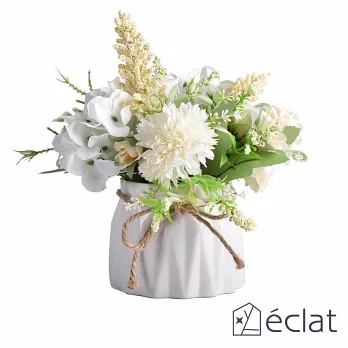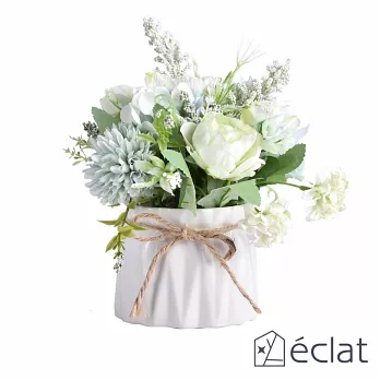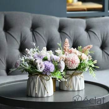 【éclat】北歐ins風仿真迷你療癒陶瓷麻繩小盆栽/桌面裝飾擺設/花藝擺件_5款任選 兔耳藍花苞