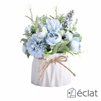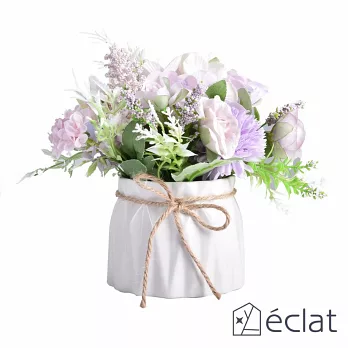 【éclat】北歐ins風仿真迷你療癒陶瓷麻繩小盆栽/桌面裝飾擺設/花藝擺件_5款任選 兔耳綠牡丹