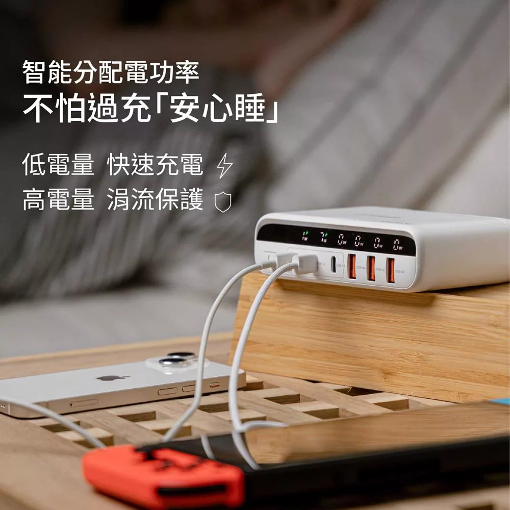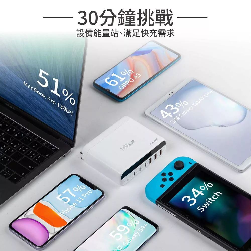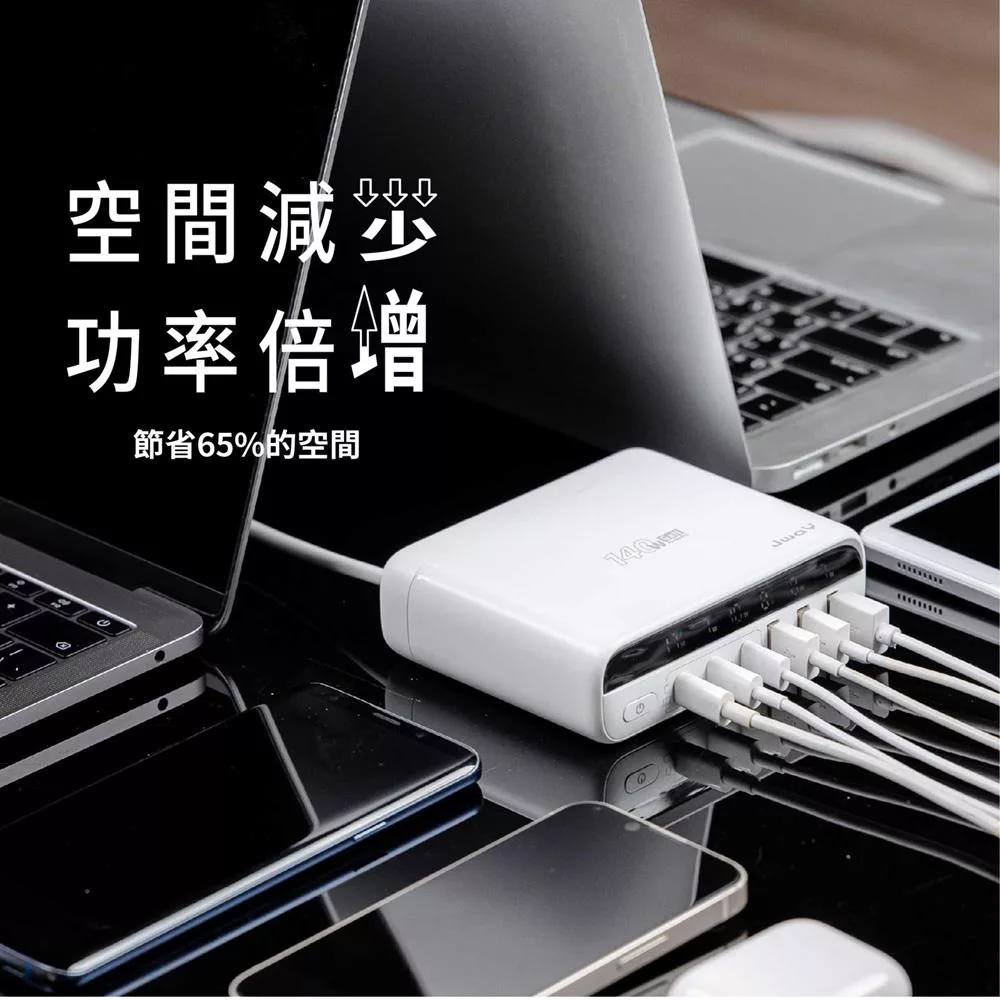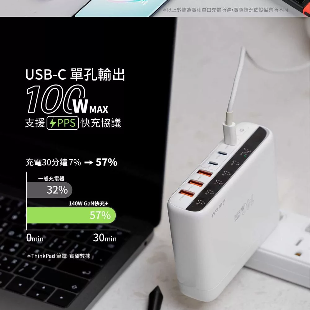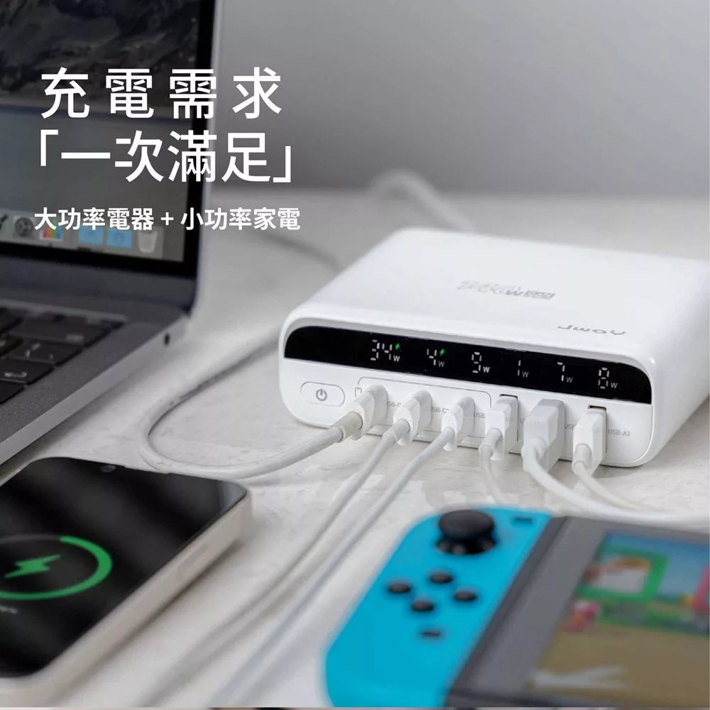 JWAY 智慧顯示140w氮化鎵6孔快充 (JY-GAN140W/旅行充電/萬國充電/手機平板筆電PD/QC快充) 白色