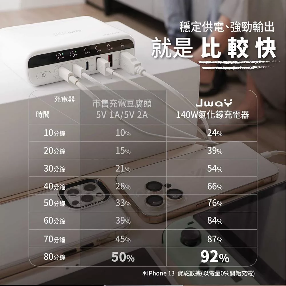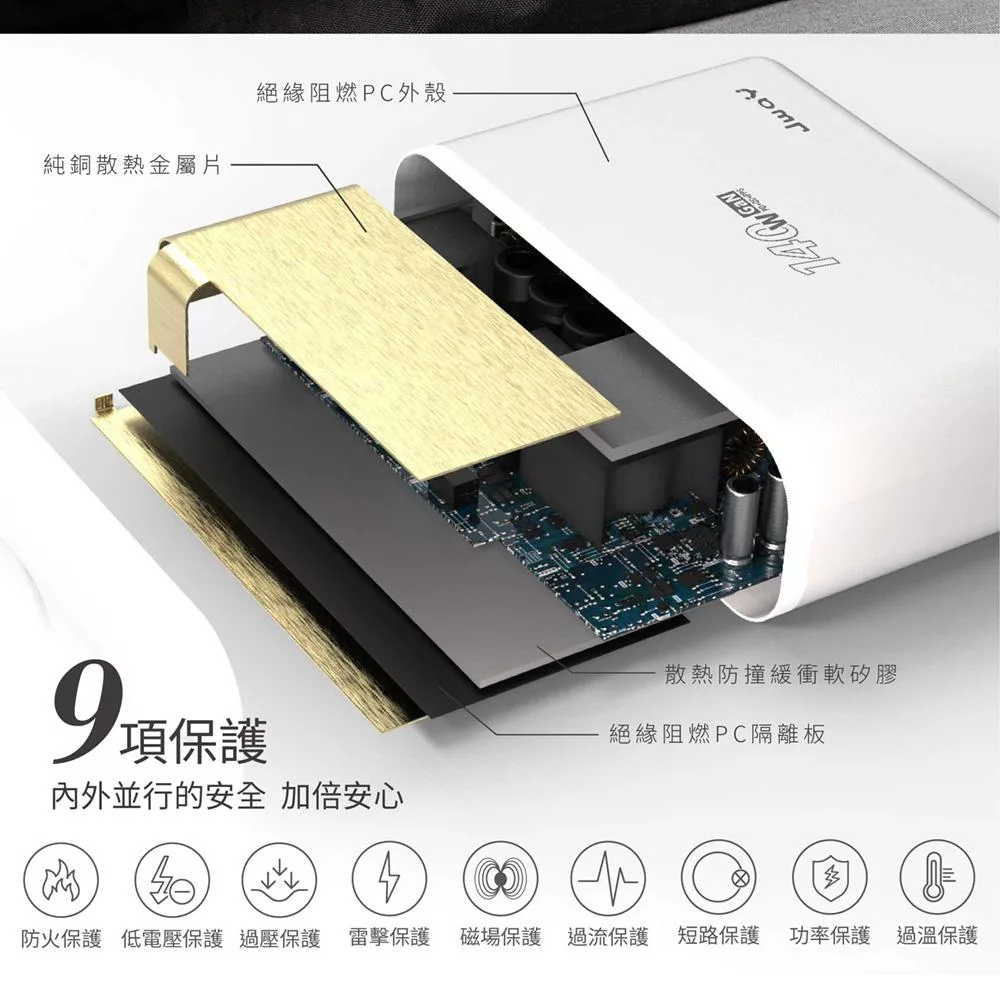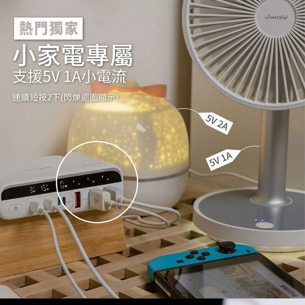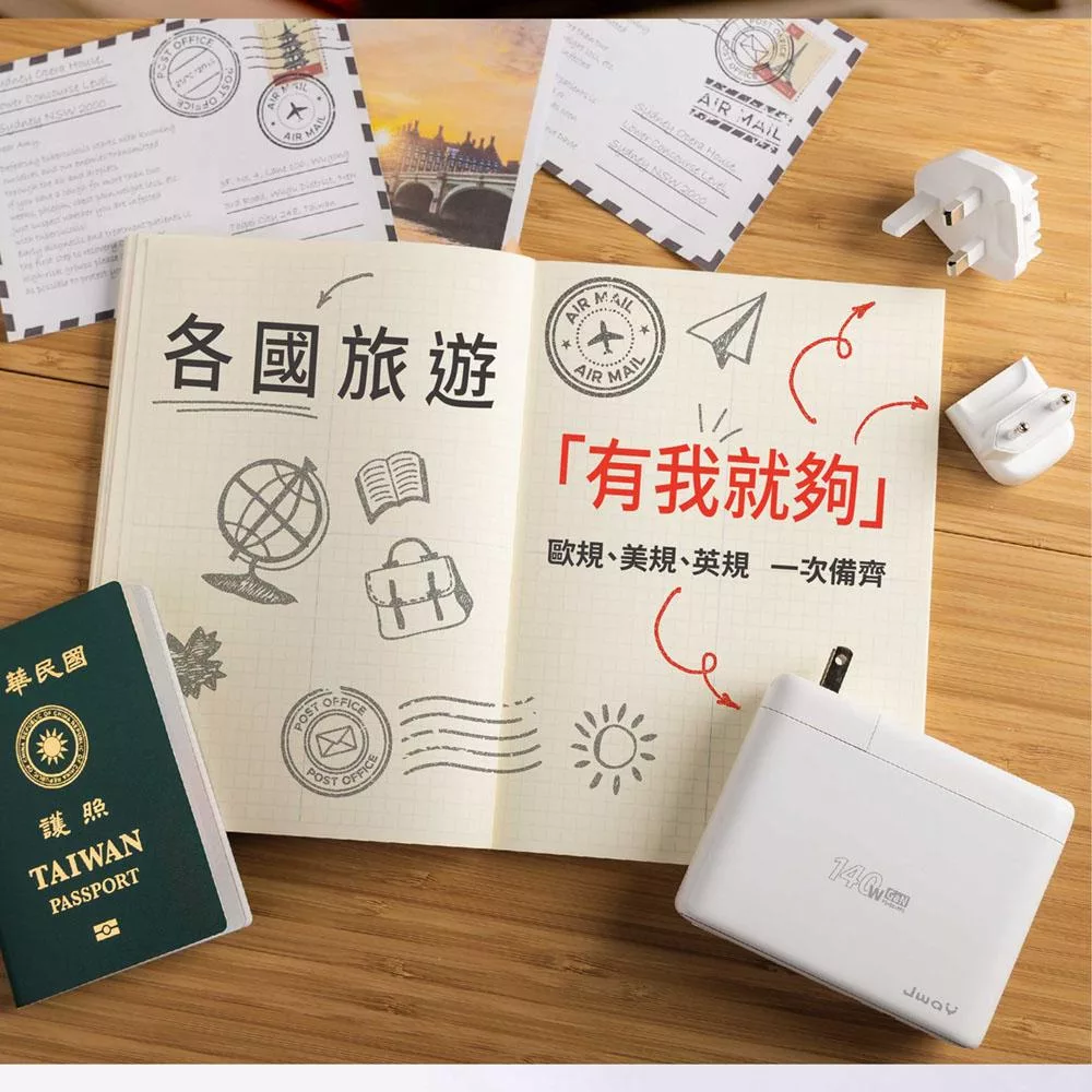 JWAY 智慧顯示140w氮化鎵6孔快充 (JY-GAN140W/旅行充電/萬國充電/手機平板筆電PD/QC快充) 白色