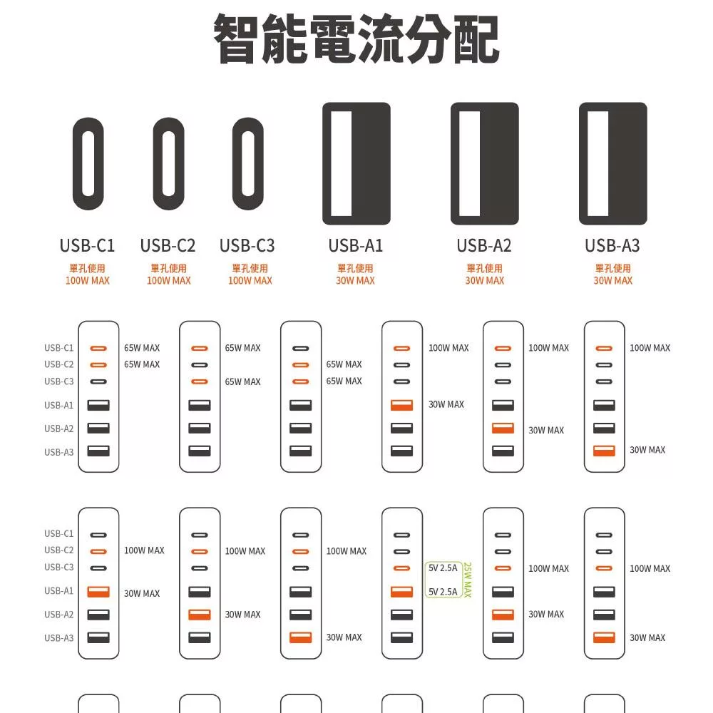 All in one PD65W氮化鎵GaN PTP高溫斷電 按壓式3開4插 USB延長線 110V專用 炫酷黑