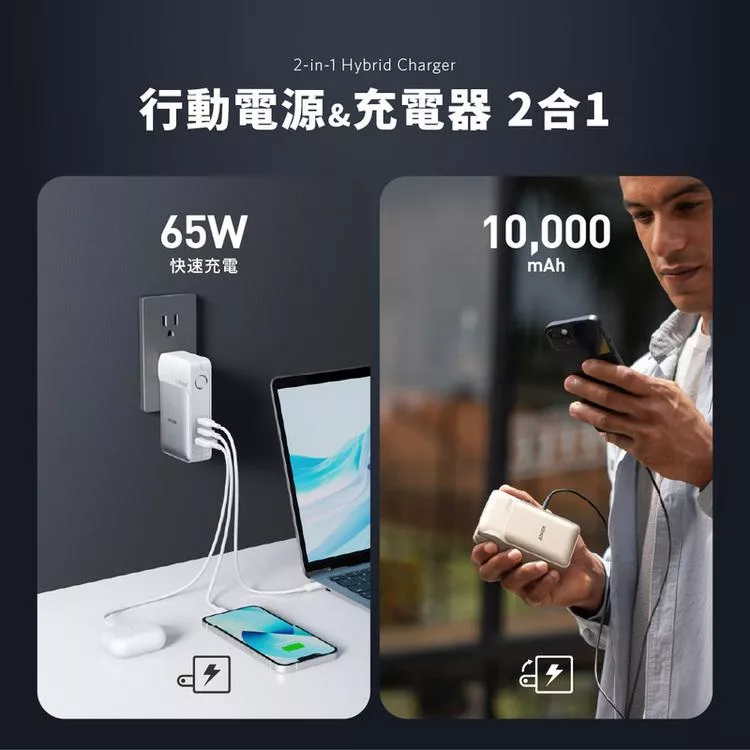 【ENABLE】台灣製造 15月保固 Traveler+ 10000mAh 20W PD/QC 自帶插頭雙向快充行動電源- 午夜藍