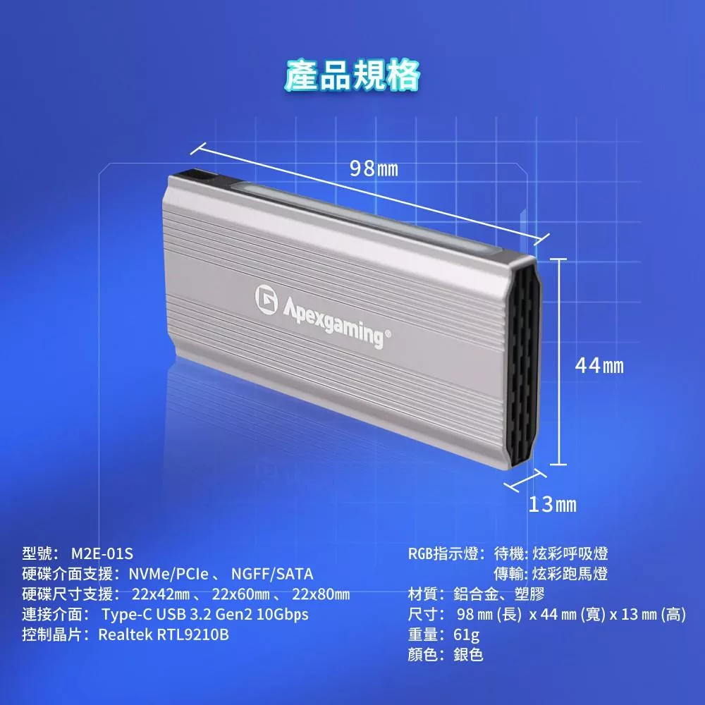 艾湃硬碟外接盒 M.2 M2E-01S