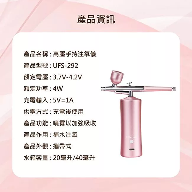 【Obeauty 奧緹】高壓手持注氧儀高效補水保濕水潤嫩肌(UFS-292)